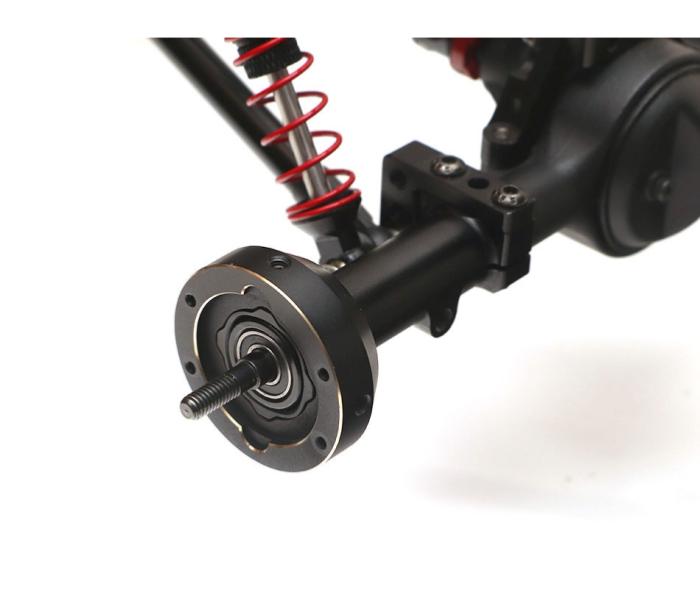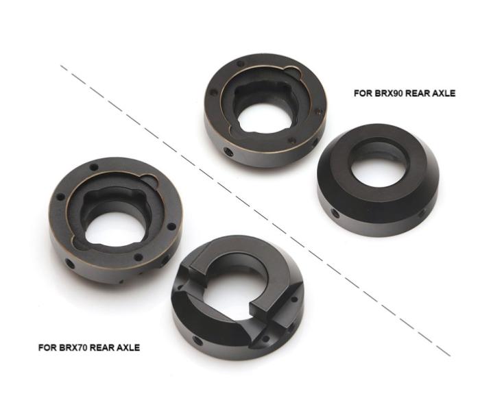 Il s'agit d'un ensemble de masses d'appui pour fusées d'essieu arrière, conçues pour les essieux BRX70 PHAT. Fabriquées en laiton de haute qualité et anodisées noires avec des bords usinés
