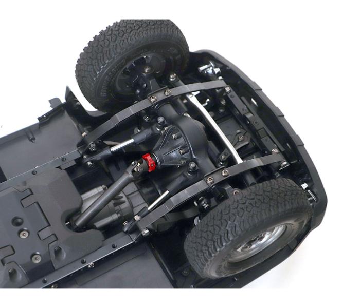Deux barres anti-enroulement en aluminium sont incluses. L'enroulement de l'essieu est un problème fréquent sur les véhicules à suspension à lames, même les petits camions. Il s'agit d'un mouvement indésirable de la suspension qui modifie l'angle du pignon, ce qui peut entraîner le blocage et la rupture de la transmission. Ces barres permettent d'éviter ce problème.