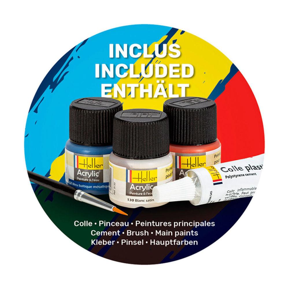 Dans ce kit, seules les peintures de base (couleurs principales de la maquette) sont fournies. Une fois votre maquette terminée vous pouvez l'améliorer avec les peintures en option qui figurent au dos de la boite.