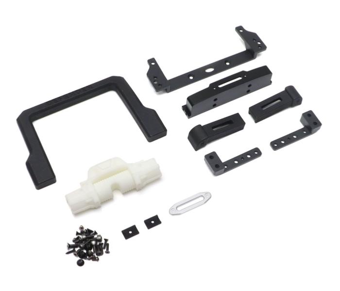 Les trois pare-chocs sont équipés d'un guide-câble en aluminium pour votre treuil fonctionnel. Le treuil factice est en plastique ABS lisse, facile à peindre pour une finition impeccable (voir la finition noire du pare-chocs Spectre). Vous pouvez faire passer un câble de servo interne à travers le treuil factice pour un réalisme saisissant.
